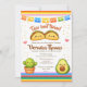 Adorable “Taco ’Bout Twins” fiesta baby shower invitation featuring cute kawaii tacos, avocado, cactus, and llama characters with colorful serape accents. Perfect for a fun Mexican-themed celebration for the mom to be expecting twins!.