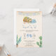 Tacos e minúsculos chás de fraldas de fiesta temática apresentando papel picado, botas de bebê azuis limão, ilustrações de taco e cacto.