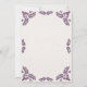 Este convite de casamento minimalista com flores roxas da Talavera mexicana apresenta uma abordagem minimalista com delicados motivos florais azuis simétricos colocados em cada canto e ao longo das bordas. As pequenas formas semelhantes a folhas criam uma sensação de movimento, mantendo um espaço arejado e aberto no centro, permitindo uma ampla colocação de texto. A simplicidade e a elegância do padrão evocam os tradicionais azulejos Talavera, dando ao design um sentimento clássico de artesanato mexicano.