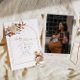 Este convite para chás de fraldas apresenta arcos boêmicos, florais de tons de terra de aquarela e uma elegante letra escrita manuscrita com sotaque de terracota divertido. Este convite para chás de fraldas é a adição perfeita para a sua celebração de boho ou outono. Adicione facilmente uma foto à parte de trás para um toque pessoal.