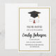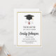 Celebre a grande conquista do seu graduado com este convite de festa de formatura elegante e minimalista. Com um clássico boné de formatura preto e um diploma enrolado com uma fita vermelha, este design oferece uma aparência atemporal adequada para formaturas do ensino médio, faculdade ou universidade. O fundo branco limpo é emoldurado por uma borda dourada sofisticada, garantindo que os detalhes do seu evento se destaquem. Este modelo totalmente editável permite que você personalize facilmente o nome, escola, data, hora e local para se adequar à sua celebração específica.