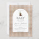 Convite Tan Brown Check Xadrez Gingham Boy Bear Chá de fra