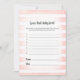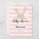 Aproveite este jogo de adivinhação do chá de fraldas da Comida do Bebê sobre o fundo das listras de aquarelas brancas, cor-de-rosa e macia. Coelho bonito, bronzeado e coelho nas costas com modelos criados para você.