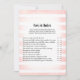 Desfrute deste jogo Over ou under chá de fraldas sobre fundo de listras de aquarela suaves, rosa e brancas. Coelho bonito, bronzeado e coelho nas costas com modelos criados para você.