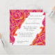 PALETA DE COR:  rosa quente, fuscia, fuscia, laranja, tangerina, cinza e branco.  COLEÇÃO DE design:  Este convite para casamento ou conjunto de chás de panela é criado da mão original de água colorida, pintada por Audrey Jeanne Roberts.  Esta disposição de design gráfico diagonal rotativa é uma peça moderna sobre espirais barrocas e floresce com pontos em cores contemporâneas brilhantes.  O design de espiral tem uma folha floral que olha para eles e é realçado com pontos.