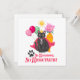Esta é uma ilustração bonita e colorida de um gato preto com superpoderes de sua altura real cercado por balões e flores. Ele é legal e fantástico!