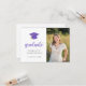 Este convite para a graduação apresenta um tema simples preto-e-branco com um boné roxo e uma torneira de ouro. Adicione uma foto e personalize o texto na frente e atrás para incluir todos os detalhes da sua festa de formatura.