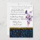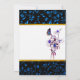 Perfeito para um casamento, trocando votos num presente de amigos. Este cartão azul de Fringe Rico fará com que qualquer casamento seja o melhor a se lembrar no primavera ou casamento outono, com um convite azul e preto. padrão azul damask no fundo e uma margarida azul e branca com uma borboleta arco-íris sobre a flor superior. e uma fita de ouro com a noiva e o nome do noivo ao lado das margaridas no fundo.