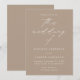 Convite de casamento minimalista e moderno, com detalhes de seu casamento em letras brancas simples com "o casamento de" em um roteiro elegante de caligrafia. O fundo esticado pode ser alterado para uma cor de sua escolha. Projetado para coordenar com a nossa coleção de casamento do Modern Elegance.
