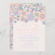 Convite de aniversário de 10 anos inspirado no retro com flores e fontes e cores estilo anos 70 e boho. Tchau, dígitos simples.