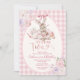 Convite Tea For Two Easter Bunny Pink Gingham 2nd Birthday