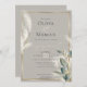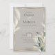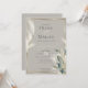 Este convite para a festa de noivado apresenta a elegante dupla de erva-palha de penas e folhas de antracério de fumo que são bordas em ouro - combina isto com o rico fundo de cogumelo esticado e você tem um tema de casamento elegante e memorável. A caligrafia moderna de script, combinada com um layout de fonte minimalista e contemporâneo, cria um design atraente. Isto é parte de um conjunto de casamento coordenado com acessórios de casamento. Arte original de ©WhimsicalArtwork™ criada especificamente para o BarefootBride™