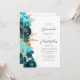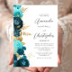 Convite Teal Aqua Floral Gold Script Wedding