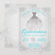 Convites Quinceanera de floco de neve do inverno azul turquesa com vestido elegante em um lindo diamante e fundo de inverno de floco de neve. Estes convites Quinceanera de inverno azul turquesa e cinza prateado são facilmente personalizados para o seu evento, basta adicionar seus detalhes.