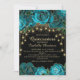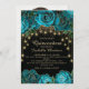 Convite de aniversário de Quinceañera para raparigas com rosas/flores lindas e elegantes, com brilho dourado e estrelas brilhantes sobre fundo preto. Personalize adicionando sua foto à parte traseira da placa.