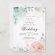 Delicate watercolor blooms in soft teal and blush hues create an elegant, romantic atmosphere. This design evokes a sense of gentle beauty and serene charm for your special occasion.