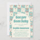 Convite Teal Checkerboard Seashell Bow Baby Shower