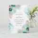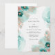 This design features a serene blend of teal watercolor washes and shimmering copper foliage. Ethereal blooms resembling poppies are nestled amongst delicate metallic leaves, creating a dreamy coastal aesthetic. The palette of aqua and bronze evokes a sense of fluid elegance and artistic sophistication. It is ideal for a seaside or waterfront event looking for a modern yet romantic touch.