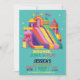 Bouncy Castle Teal Festa de aniversário Salto de Salto de Salto, design de Convite. Perfeito para rapazes ou raparigas. Traseiro incluído.