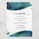 Essa elegante placa Save the Date apresenta uma bela aquarela em tons de azul e lacre lacrado com ouro e tem a aparência de um geode agado e uma combinação de script e texto moderno. É fácil personalizar com opções personalizadas. Use o botão 'Personalizar' para personalizar o produto ou adicionar texto.