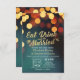 Convite Teal Dourado Bokeh Light EAT Drink Casem-Se