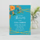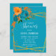 Convite Teal e Florais Laranja Dourados Chá de fraldas