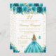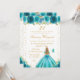 Convite Teal Floral Blonde Hair Princess Festa de aniversá