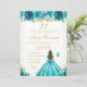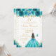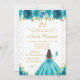 Convite Teal Floral Brunette Hair Princess Birthday Party
