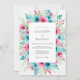 This watercolor design showcases a vibrant arrangement of blooming anemones in shades of fuchsia and teal. Delicate sage green foliage and pink berry accents create a fresh and airy feel. The artistic style offers a romantic aesthetic with a bright and energetic color palette.
