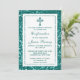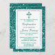 Convite Teal Glitter Cruz Santa Comunhão Ou Confirmação