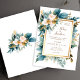 Convite Teal Gold Floral Garden Boho Elegant Wedding