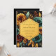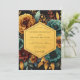 A dark, opulent backdrop showcases richly hued blooms in deep teal and warm golden tones. Lush foliage and delicate berry clusters add depth to this romantic, twilight-inspired botanical design. Evokes a sense of moody elegance for a special occasion.