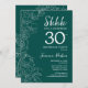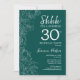 Convite para aniversário de 30 anos de Surpresa Verde Teal. A design feminina moderna minimalista apresenta sotaques botânicos e letra de script de tipografia. Simples cartão de convite floral perfeito para uma festa surpresa na moda.