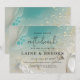 Convite Teal Ocean Tide & Gold Ethereal Shoreline Wedding