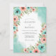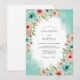 This ethereal design features a vibrant palette of teal blue and peach watercolor tones. Delicate anemones with dark centers are surrounded by soft greenery and airy washes of pigment. The aesthetic is perfect for a breezy spring or summer occasion seeking a romantic, hand-painted feel.