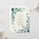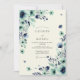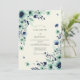 This design features a sophisticated watercolor floral arrangement in shades of teal, navy blue, and mint green. Delicate anemones and graceful greenery create a serene botanical atmosphere. The off-white background enhances the airy and soft aesthetic, making it ideal for a seasonal event.