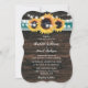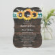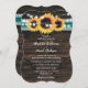 Convite Teal Sunflower Rustic Wood String Lights Wedding