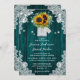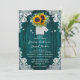 Convite Teal Sunflower Wood Lace Mason Jar Wedding