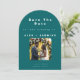Anuncie seu marco de 2026 com a Foto com Arco Moderno "Save the Date", uma peça exclusiva da coleção The Editorial Arch na Retro Remix. Este design combina perfeitamente seu retrato de noivado favorito com as linhas arquitetônicas ousadas e a cor principal de 2026: Transformative Teal.