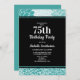 Convite Teal White Floral 75ª Festa de aniversário Mulhere