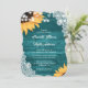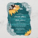 Convite Teal Wood Lace String Lights Sunflower Wedding