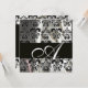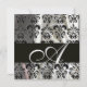 Convite TECIDO DE DAMASCO DE SEDA PRETO E BRANCO Monograma