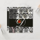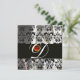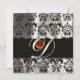 CONVITE TECIDO DE SEDA PRETA E BRANCA COM MONOGRAMA VERMEL