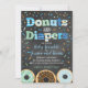 Perfeito para qualquer chá de fraldas de bebê ou aspersão de bebê em breve - este convite para Rosquinha e Fralda apresenta um fundo no estilo de quadro negro, uma escrita colorida de padrões, gráficos de rosquinha doce e sotaques de aspersão por toda a parte. Todos os outros textos podem ser personalizados para qualquer chá de fraldas ou texto de borbulhar que você queira adicionar. Também disponível com fundo branco e cores de menina. Consulte comprar outras cores.