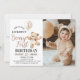 Celebre o seu grande marco com o nosso convite de fotos de aniversário do Teddy Bear Balloon! Com um adorável ursinho de pelúcia flutuando com balão, este design adiciona um toque doce e caprichoso ao dia especial do seu bebê. Mostre a sua foto favorita do aniversariante, fazer que este convide uma lembrança digna de respeito para a família e os amigos. Personalize-o com o nome do seu filho e os detalhes da festa para dar o tom a uma belezinha inesquecível comemoração do primeiro aniversário!