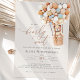 Podemos Esperar! :) Este pequeno urso está esperando a grande festa do bebê, sentado num balão de ar quente construído com balões azuis, castanhos e creme. As aquarelas brancas e a tipografia moderna complementam a design. Personalize este belo convite para Chá de fraldas do Urso com os detalhes do seu chá de fraldas de forma fácil e rápida, pressione o botão personalizá-lo para reorganizar e formate o estilo e o posicionamento do texto.