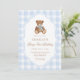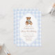 Convite Teddy Bear Blue Minimalist Boy Birthday