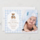 Convite Teddy Bear Blue Minimalist Boy Birthday Photo