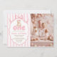 Convite Teddy Bear Girls Pink Bow Stripes 1st Birthday