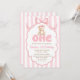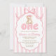 Convite Teddy Bear Girls Pink Bow Stripes 1st Birthday
